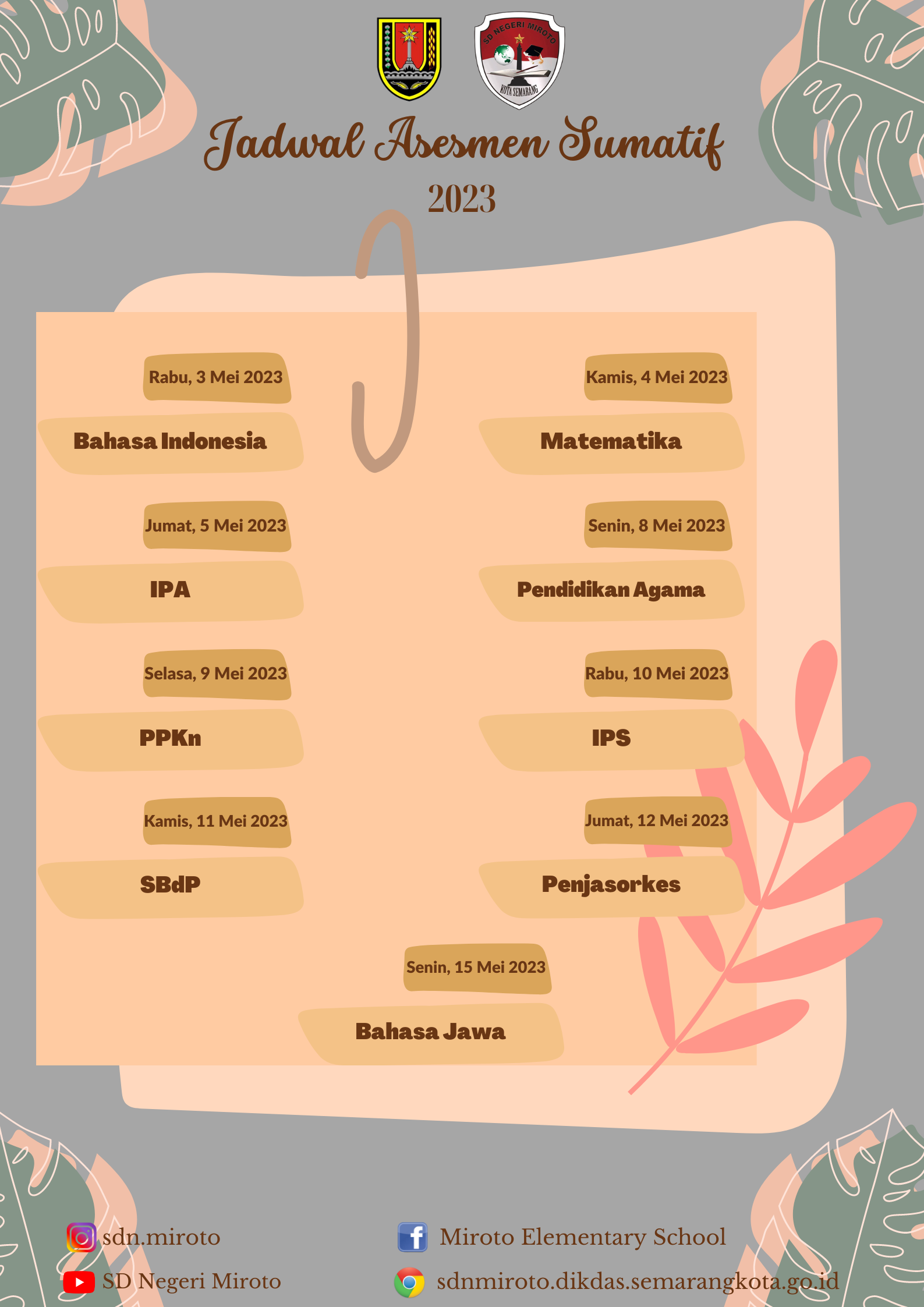 Bagi Siswa/Siswi Kelas 6 SDN Miroto, silahkan perhatikan jadwal Asesmen Sumatif Tahun 2023